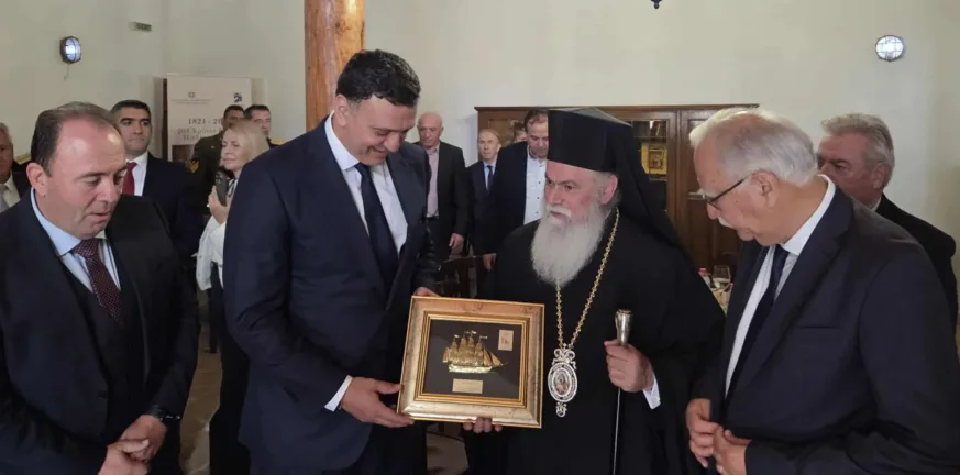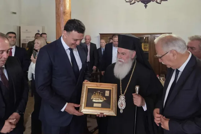 Ο Σεβασμιώτατος Μητροπολίτης κ. Ιερώνυμος, μετά το πέρας της Δοξολογίας, αφού καλωσόρισε με θερμά λόγια τον Υπουργό Ναυτιλίας και Νησιωτικής Πολιτικής κ. Βασίλειο Κικίλια στα μαρτυρικά Καλάβρυτα, απηύθυνε επίκαιρο και εμπνευσμένο λόγο, με αναφορά στα μηνύματα της ιστορικής Επετείου, τονίζοντας τη σημασία της ενότητος, της πίστεως και της φιλοπατρίας στη σύγχρονη Ελλάδα. Επίσης, ο Σεβασμιώτατος συνεχάρη τους νέους και τα παιδιά μας για τη συμμετοχή τους στις εορταστικές εκδηλώσεις, κάνοντας ειδική αναφορά στο παράδειγμα των μαθητών που παρέλασαν υπό βροχή στη Θεσσαλονίκη, αποδεικνύοντας έμπρακτα την αγάπη τους για την Πατρίδα.