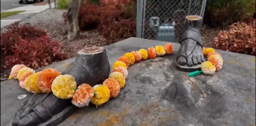 Σε βίντεο έχουν καταγράφει τα απομεινάρια του αγάλματος του Μαχάτμα Γκάντι, από τους αστραγάλους και κάτω, έξω από το Australian Indian Community Centre στη Μελβούρνη, μετά την κλοπή του μνημείου.