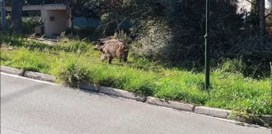 Ομάδα αγριογούρουνων εμφανίστηκε την Καθαρά Δευτέρα 23 Φεβρουαρίου 2026 στην Εκάλη, λίγα χιλιόμετρα από το κέντρο της Αθήνας.