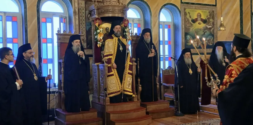 Στις ιερές ακολουθίες συμμετείχαν οι Σεβασμιώτατοι Μητροπολίτες πρώην Καλαβρύτων και Αιγιαλείας κ. Αμβρόσιος, Πειραιώς και Φαλήρου κ. Σεραφείμ, Πατρών κ. Χρυσόστομος, Νέας Ιωνίας, Φιλαδελφείας, Ηρακλείου και Χαλκηδόνος κ. Γαβριήλ, Θεσσαλονίκης κ. Φιλόθεος, Παραμυθίας, Φιλιατών και Γηρομερίου κ. Σεραπίων, οι Θεοφιλέστατοι Επίσκοποι Κερνίτσης κ. Χρύσανθος και Ευμενείας κ. Ειρηναίος, καθώς και ο Μητροπολίτης Καλαβρύτων και Αιγιαλείας κ. Ιερώνυμος.