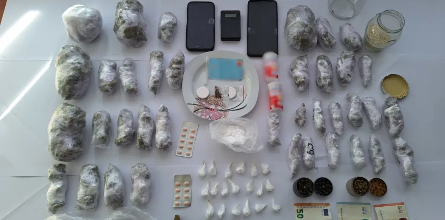 Κατά τις έρευνες που πραγματοποιήθηκαν σε κατοικίες, όχημα και στους ίδιους τους κατηγορούμενους, οι αστυνομικοί εντόπισαν και κατέσχεσαν περίπου 76 γραμμάρια κοκαΐνης, περισσότερα από 600 γραμμάρια κάνναβης, ναρκωτικά δισκία, ηλεκτρονική ζυγαριά, τρίφτες, κινητά τηλέφωνα και χρηματικό ποσό. Παράλληλα, κατασχέθηκε και αυτοκίνητο που φέρεται να χρησιμοποιούνταν για τη μεταφορά των ουσιών.