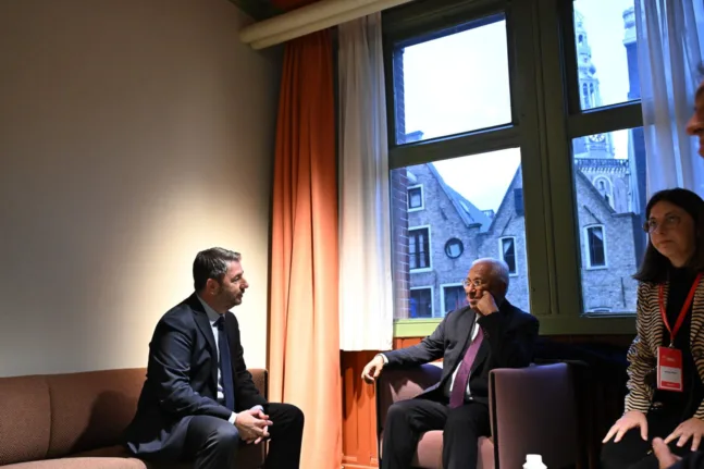 Με τον πρόεδρο του Ευρωπαϊκού Συμβουλίου, Αντόνιο Κόστα, στο περιθώριο του συνεδρίου του Ευρωπαϊκού Σοσιαλιστικού Κόμματος στο Άμστερνταμ, συναντήθηκε οπρόεδρος του ΠΑΣΟΚ-Κινήματος Αλλαγής, Νίκος Ανδρουλάκης.