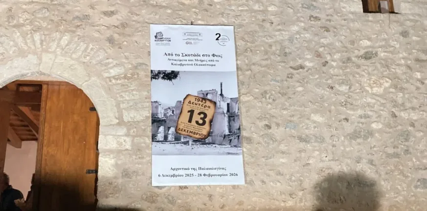 Ανοικτή παραμένει για το κοινό έως το Σάββατο 28 Φεβρουαρίου η Έκθεση «Απ’ το Σκοτάδι στο Φως: Αντικείμενα και μνήμες του Καλαβρυτινού Ολοκαυτώματος» που φιλοξενείται στο Αρχοντικό της Παλαιολογίνας στα Καλάβρυτα.