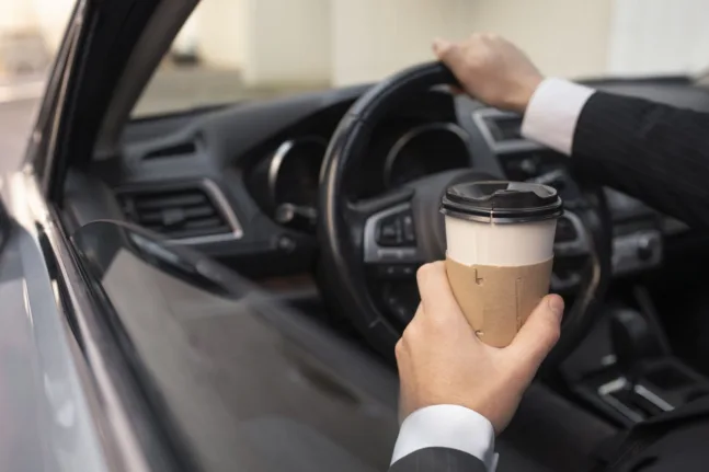 Σύμφωνα με αυτές, απαγορεύεται η κατανάλωση ροφημάτων, όπως καφές ή τσάι ή πορτοκαλάδα, την ώρα που κάποιος οδηγεί. Οι ειδικοί εξηγούν ότι η απόσπαση προσοχής, ακόμη και για λίγα δευτερόλεπτα, μπορεί να οδηγήσει σε επικίνδυνες καταστάσεις.