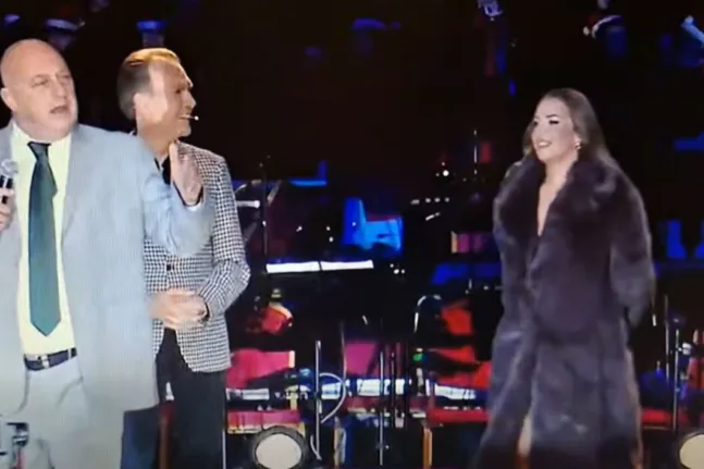 Προκάλεσαν εμφανή αμηχανία στον παρουσιαστή της εκδήλωσης, Σωτήρη Πολύζο, και την τραγουδίστρια Ανδρομάχη