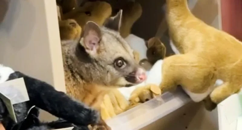 Ένα μικρό πόσουμ εντοπίστηκε κρυμμένο ανάμεσα σε λούτρινα ζωάκια σε κατάστημα με σουβενίρ στο αεροδρόμιο του Χόμπαρτ στην Τασμανία, προκαλώντας έκπληξη σε πελάτες και εργαζόμενους. Το περιστατικό σημειώθηκε το πρωί της Τετάρτης 18 Μαρτίου.