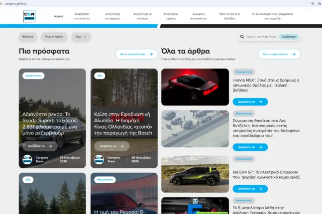 Το blog του Carspecs.gr είναι ο απαραίτητος οδηγός σου, είτε είσαι έτοιμος για αγορά, είτε απλά αγαπάς την αυτοκίνηση:
