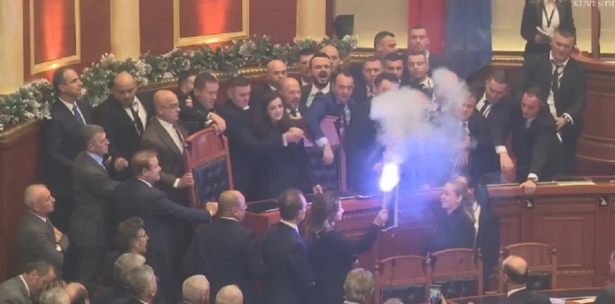 Χαμός στη Βουλή της Αλβανίας: Πιάστηκαν στα χέρια και άναψαν καπνογόνα ΒΙΝΤΕΟ