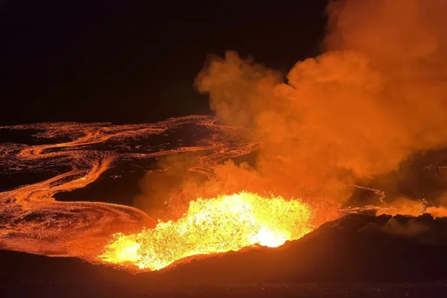 Βίντεο που αναρτήθηκαν στα social media, απαθανατίζουν τη στιγμή που η λάβα αναβλύζει ορμητικά από το έδαφος, στο 42ο επεισόδιο της συνεχιζόμενης ηφαιστειακής δραστηριότητας που ξεκίνησε τον Δεκέμβριο του 2024.