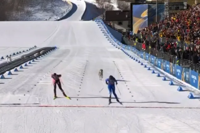 Όπως φαίνεται σε βίντεο που κυκλοφόρησε στα social media και έγινε γρήγορα viral ο σκύλος εισέβαλε στην πίστα και άρχισε να τρέχει με τη γλώσσα έξω πίσω από δύο γυναίκες σκιέρ λίγο πριν περάσουν την γραμμή τερματισμού.