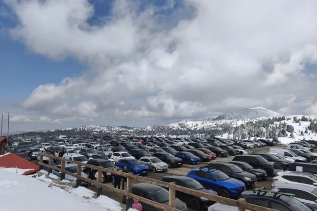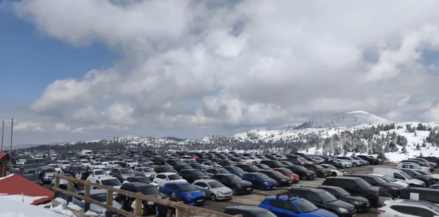 Αρκούν οι φωτογραφίες από την εικόνα στο πάρκινγκ για να διαπιστώσει κανείς πόσοι φίλοι του χιονιού βρέθηκαν στο βουνό.
