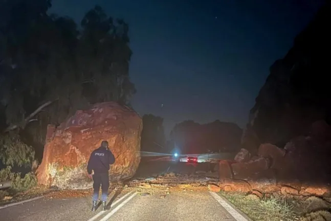 Χίος: Τεράστιος βράχος έπεσε στην εθνική οδό