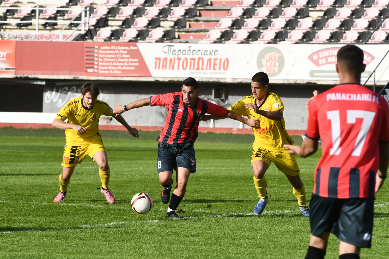 Στο 38′ η Παναχαϊκή είχε μεγάλη ευκαιρία να μειώσει, αλλά ο Τριαντάφυλλος έβγαλε εξαιρετικά το φάουλ του Νιφορόπουλου με τον τερματοφύλακα της Κορίνθου να τραυματίζεται, καθώς έπεσε στο δοκάρι.