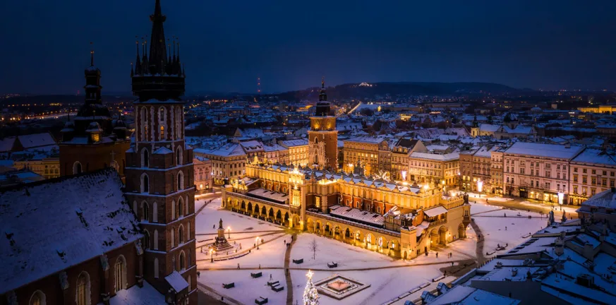 Η Κρακοβία αποτελεί έναν από τους πιο δημοφιλείς χειμερινούς προορισμούς στην Ευρώπη και την περίοδο των Χριστουγέννων αποκτά έναν ιδιαίτερο χαρακτήρα που προσελκύει χιλιάδες επισκέπτες. Στο επίκεντρο του εορταστικού ενδιαφέροντος βρίσκεται η χριστουγεννιάτικη αγορά της πόλης, η οποία λειτουργεί στην κεντρική πλατεία Rynek Główny, στην καρδιά της Παλιάς Πόλης.