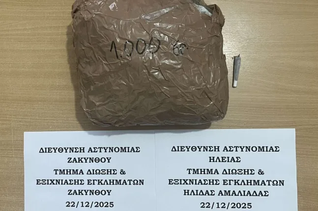 Κακουργηματικού χαρακτήρα δικογραφία για διακίνηση ναρκωτικών, σχηματίσθηκε σε βάρος άνδρα που συνελήφθη στην Κυλλήνη, το απόγευμα της Δευτέρας 22/12/2025, από αστυνομικούς του Τμήματος Δίωξης και Εξιχνίασης Εγκλημάτων Ήλιδας