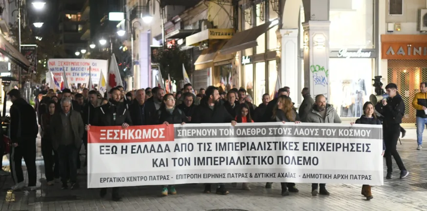 «Καμία συμμετοχή της χώρας μας στη φωτιά του πολέμου που έχει φουντώσει στη Μέση Ανατολή, απαίτησαν εργαζόμενοι, νεολαία και λαός της Πάτρας συμμετέχοντας στο συλλαλητήριο που διοργάνωσε το Εργατικό Κέντρο Πάτρας στις 7 το απόγευμα της Δευτέρας 2 Μάρτη 2026». Αυτά τονίζονται σε σχετικό ενημερωτικό του Δήμου Πατρέων και ακολούθως αναφέρονται τα εξής: