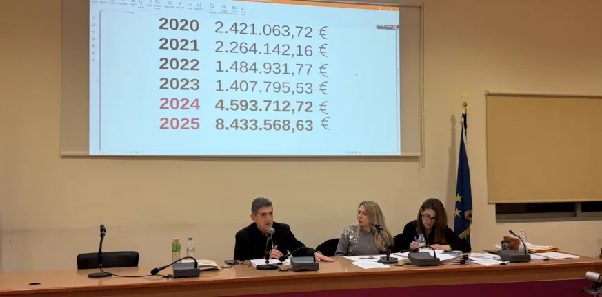 Παρουσιάζοντας τα οικονομικά στοιχεία, ο κ. Αλεξόπουλος ανέφερε ότι η χρηστή διαχείριση αποτυπώνεται στην αύξηση των ταμειακών διαθεσίμων του Δήμου κατά περίπου 500% μέσα σε δύο χρόνια, καθώς και στη σημαντική άνοδο τόσο των εισπράξεων –κατά 75,7% σε σύγκριση με το 2023– όσο και των πληρωμών, που αυξήθηκαν κατά 27,4%. Όπως σημείωσε, τα στοιχεία αυτά καταδεικνύουν ενίσχυση της ρευστότητας, της αξιοπιστίας και του κύρους του Δήμου, ενώ ανακοίνωσε ότι και το 2026 τα δημοτικά τέλη θα παραμείνουν αμετάβλητα.