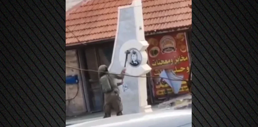 Το βίντεο που δημοσιεύθηκε χθες έδειχνε τον στρατιώτη να χτυπά επανειλημμένα το μνημείο, στην πόλη Ζαμπάμπντεχ, κοντά στην Τζενίν, με μια βαριοπούλα.
