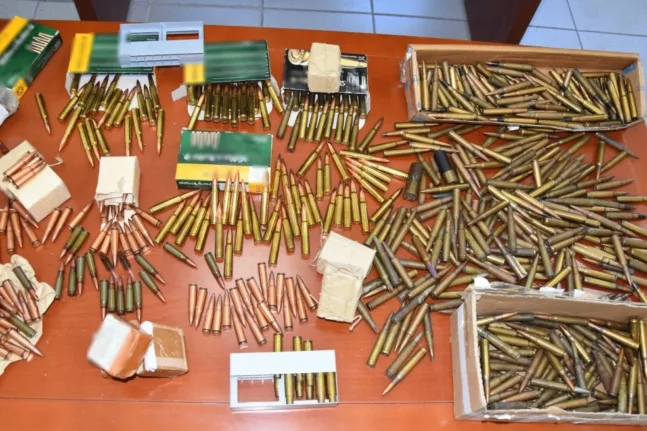 Εκεί, βρέθηκαν και κατασχέθηκαν συνολικά: 2 πολεμικά όπλα, 3 κυνηγετικά όπλα, περίστροφο, 798 φυσίγγια, 42 κάλυκες, 6 βολίδες, 3 ξιφολόγχες, 11 γεμιστήρες, κορμός πολεμικού όπλου, 2 κάννες πολεμικών όπλων, διόπτρα και διάφορα εξαρτήματα όπλων.