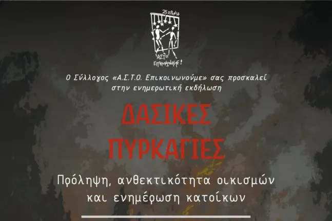 Εκδήλωση στην Πάτρα για τις δασικές πυρκαγιές από τον ΑΣΤΟ-Επικοινωνούμε