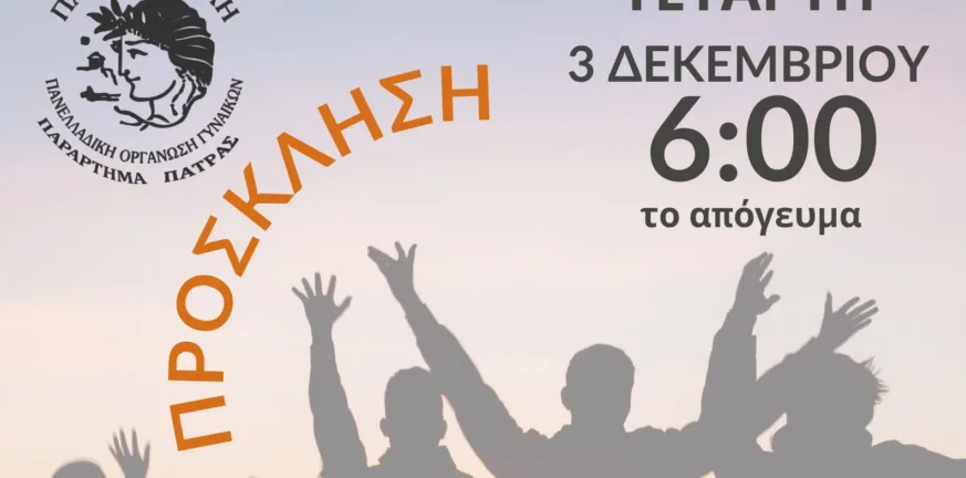 Η Πανελλαδική Οργάνωση Γυναικών Παναθηναϊκή – Παράρτημα Πάτρας σε συνεργασία με την Περιφέρεια Δυτικής Ελλάδας, διοργανώνει ημερίδα με θέμα: