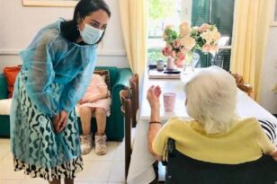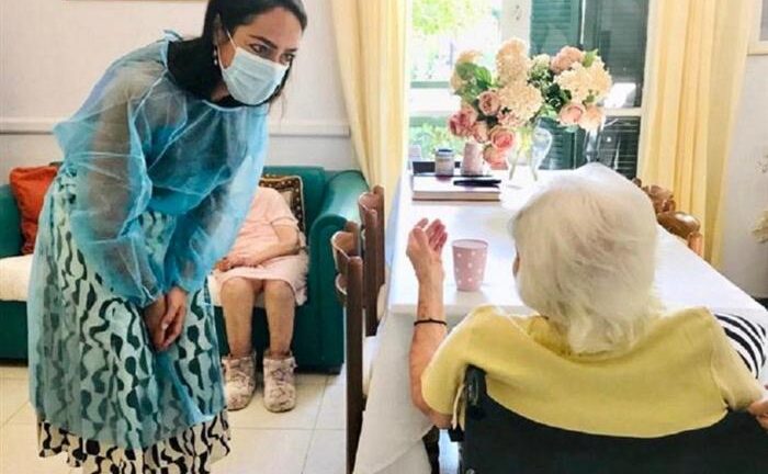 Η υφυπουργός πήγε στη δομή για να δει από κοντά τη διαδικασία και να μιλήσει τόσο με τους υπεύθυνους της Μονάδας Φροντίδας όσο και με τους φιλοξενούμενους. Ανάμεσά τους η κυρία Ελευθερία που γεννήθηκε στις 12/04/1903 στη Λευκάδα και περίμενε ανυπόμονα να εμβολιαστεί για να ξανασφίξει στην αγκαλιά της τα παιδιά της.