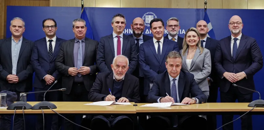 Ενεργειακή αναβάθμιση της τριόωροφης πτέρυγας Γεννηματά του «Αγ. Ανδρέα»: Αναμορφώνεται μετά από 40 χρόνια Στιγμιότυπο από την υπογραφή της σύμβασης