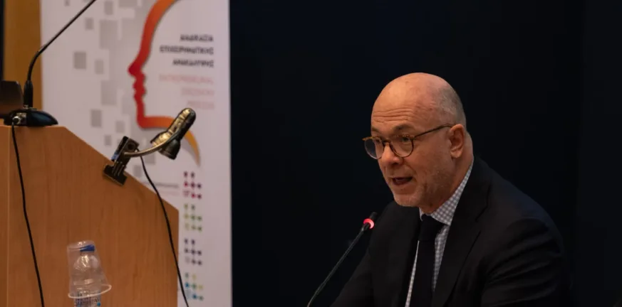 Η ημερίδα έκλεισε με την διαδραστική ενότητα «Καινοτομία στην Πράξη» που άνοιξε ο Εντεταλμένος Σύμβουλος RIS3 της ΠΔΕ, Λυκούργος Σταυρουλόπουλος.