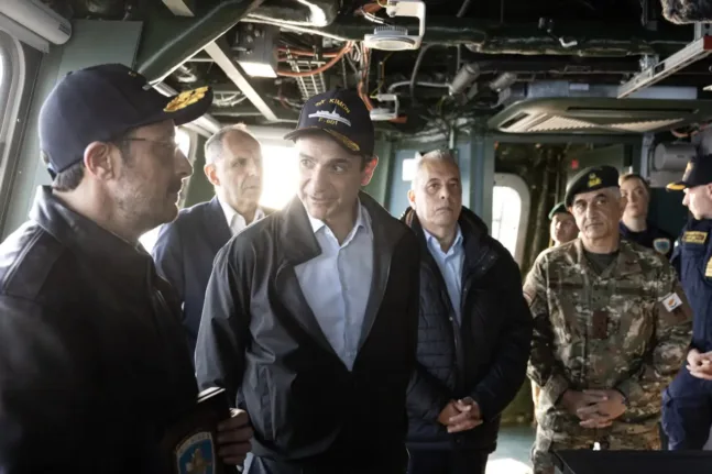 Ο πρωθυπουργός Κυριάκος Μητσοτάκης και ο πρόεδρος της Κυπριακής Δημοκρατίας Νίκος Χριστοδουλίδης επισκέφθηκαν το απόγευμα της Δευτέρας (09.03.2026) τη φρεγάτα «Κίμων», σε μια κίνηση με ισχυρό πολιτικό και επιχειρησιακό αποτύπωμα, στο πλαίσιο της επίσκεψης του Έλληνα πρωθυπουργού στη Μεγαλόνησο.