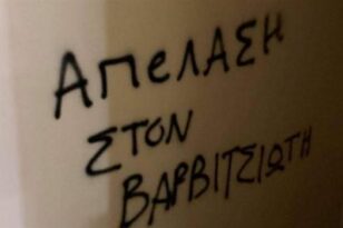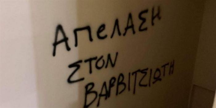 Οι αντιεξουσιαστές επιτέθηκαν με τρικάκια και μπογιές, γράφοντας χαρακτηριστικά «Απέλαση στον Βαρβιτσιώτη».