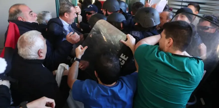 Προκλητικά –όπως το συνηθίζει- ο υπουργός εμπορίας της υγείας, απευθύνθηκε με αναίδεια στους συγκεντρωμένους εργαζόμενους και διέταξε τα όργανα της τάξης να σπρώξουν βίαια τον κόσμο με ασπίδες και ρόπαλα, προκειμένου να εισέλθει στο νοσοκομείο.