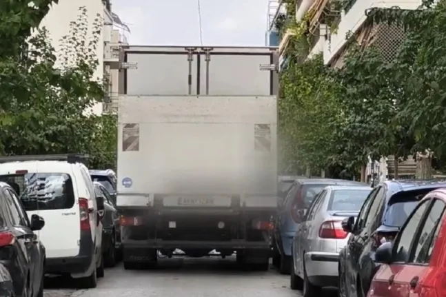Φορτηγό «κόλλησε» στα Εξάρχεια προκαλώντας ζημιές σε εννέα αυτοκίνητα – Κομφούζιο στην Καλλιδρομίου
