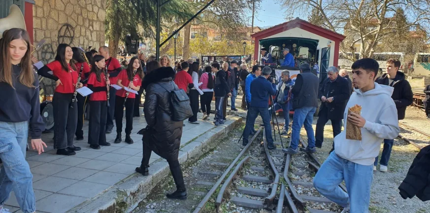 Η εκδήλωση ξεκίνησε με την υποδοχή στον Σταθμό Καλαβρύτων των επιβατών του πρωινού δρομολογίου απ’ το Διακοπτό απ’ την Φιλαρμονική Ορχήστρα του Δήμου Καλαβρύτων.