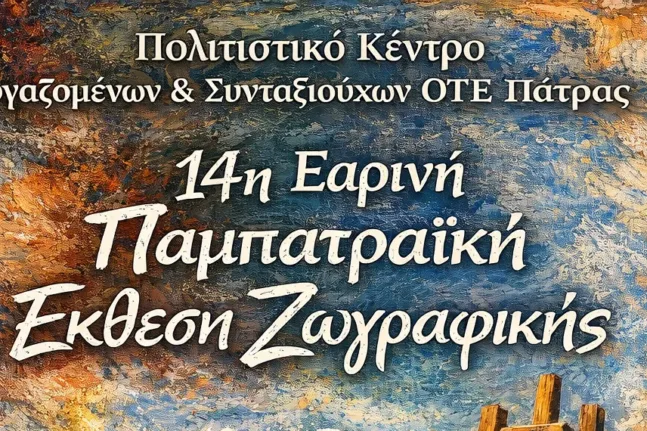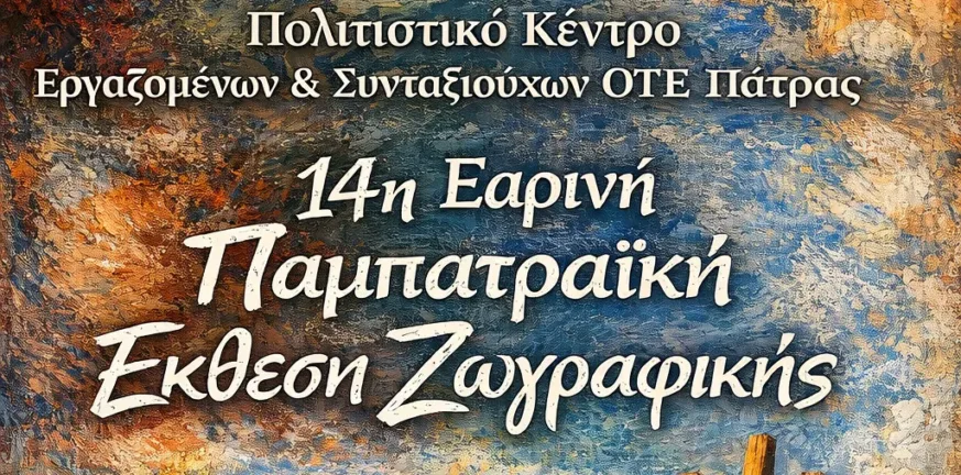Για 14η συνεχόμενη χρονιά, το Πολιτιστικό Κέντρο Εργαζομένων & Συνταξιούχων ΟΤΕ Πάτρας διοργανώνει την Εαρινή Παμπατραϊκή Έκθεση Τέχνης, έναν θεσμό που έχει πλέον καθιερωθεί στα πολιτιστικά δρώμενα της Πάτρα.