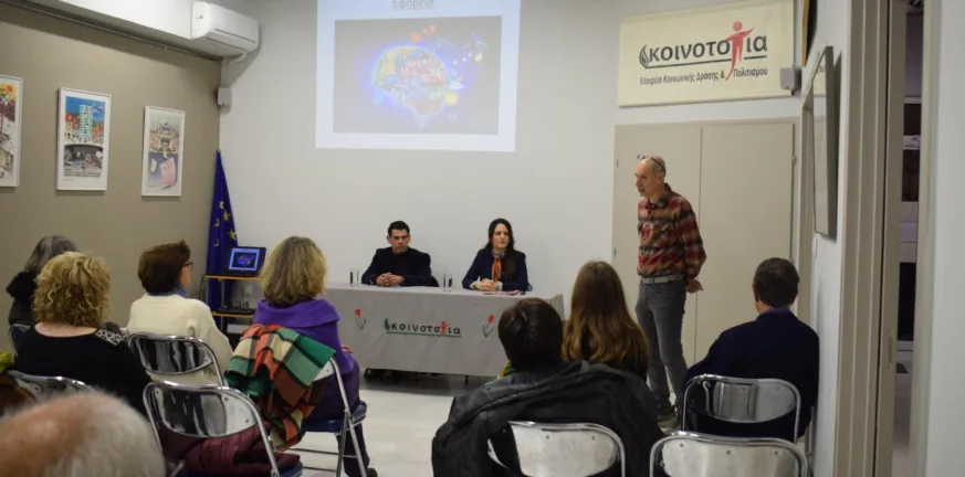 Με θέμα τους εθισμούς στην εφηβική ηλικία και με επίκεντρο τρεις κρίσιμες όψεις του προβλήματος —το κάπνισμα, τις ουσίες και τον τεχνολογικό εθισμό— πραγματοποιήθηκε στον πολυχώρο της Κοινο_Τοπίας ενημερωτική εσπερίδα, στο πλαίσιο των δράσεων της Εταιρείας Κοινωνικής Δράσης και Πολιτισμού για την προαγωγή της υγείας και της ποιότητας ζωής.