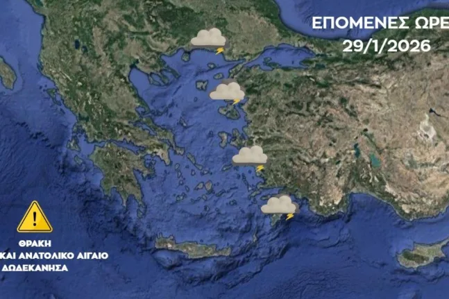 Τις επόμενες ώρες και έως το πρωί αναμένονται ισχυρές βροχές και καταιγίδες στη Θράκη και στην ανατολική νησιωτική χώρα