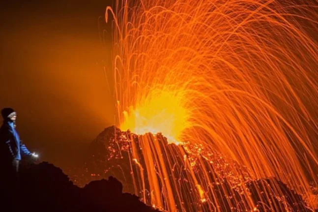Η ηφαιστειακή δραστηριότητα ξεκίνησε πριν από περίπου έναν μήνα, ωστόσο τις τελευταίες ημέρες η ροή της λάβας εντάθηκε, με αποτέλεσμα να διασχίσει μεγάλες εκτάσεις και να καταλήξει στη θάλασσα, δημιουργώντας ένα εντυπωσιακό και σπάνιο θέαμα.