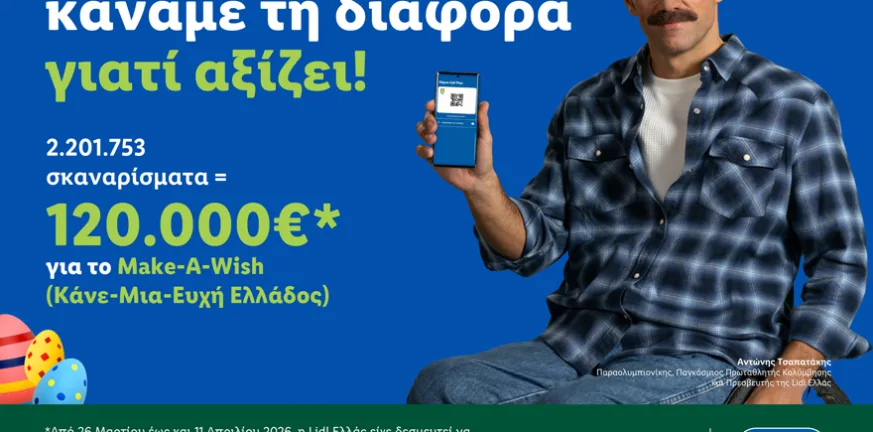 Από την Πέμπτη 26 Μαρτίου έως και το Μ. Σάββατο 11 Απριλίου 2026, οι χρήστες της εφαρμογής Lidl Plus έγιναν μέρος μιας μεγάλης αλυσίδας αγάπης. Με κάθε σκανάρισμα της ψηφιακής τους κάρτας, η εταιρεία προσέφερε 0,05€ στον οργανισμό. Μέσα σε αυτό το διάστημα καταγράφηκαν συνολικά 2.201.753 σκαναρίσματα, συγκεντρώνοντας το εντυπωσιακό ποσό των 110.088€.  Ωστόσο, αναγνωρίζοντας τη σημασία του έργου του Make-A-Wish (Κάνε-Μια-Ευχή Ελλάδος), η εταιρεία προχώρησε στην προσφορά ποσού συνολικής αξίας 120.000€.