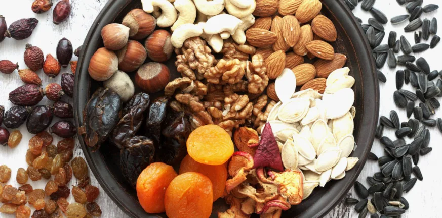 Οι ξηροί καρποί είναι πλούσιοι σε φυτικές ίνες, πρωτεΐνες και βιταμίνες, ενώ ένας από τους λόγους για τους οποίους θεωρούνται τόσο ωφέλιμοι είναι η υψηλή περιεκτικότητά τους σε καλά λιπαρά οξέα.