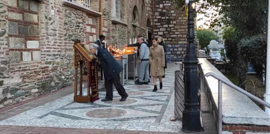 Για ακόμη μία ημέρα πιστοί παρά τα ισχυρά υγειονομικά πρωτόκολλα που έχουν τεθεί σε ισχύ με την υποχρεωτική χρήση της μάσκας, ασπάζονται τις εικόνες ακάλυπτοι. Όλα αυτά όπως είναι φυσικό δημιουργούν ανησυχία για μεγάλη αύξηση των κρουσμάτων και των θανάτων από κορονοϊό στην Θεσσαλονίκη.