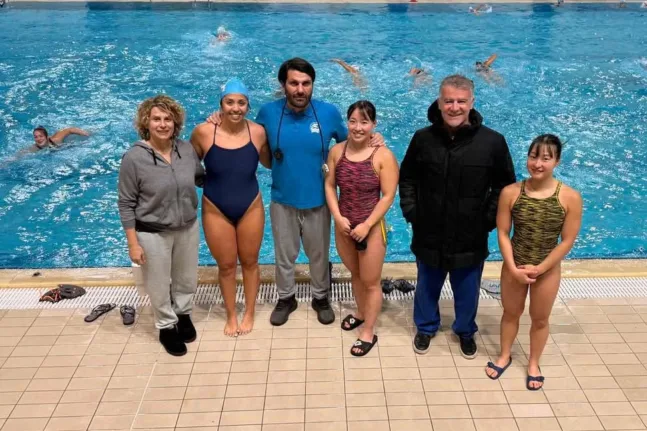 Στη φωτογραφία διακρίνεται δεξιά μαζί με τους προπονητές της ΝΕΠ Γιώργο Τσόκα και Σοφία Μανέτα, τις πολίστριες Σελέστ Αλμενταρίζ και Χικάρου Σιτάρα και τον υπεύθυνο στρατηγικού σχεδιασμού των «δελφινιών» Γρηγόρη Τσίγκα στο κολυμβητήριο «Α. Πεπανός».