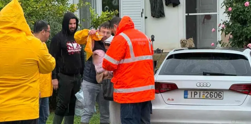 Στην περιοχή Άη Γιάννη Κορακά σημειώθηκε ένα από τα πιο απαιτητικά περιστατικά, όταν μια μητέρα και το βρέφος της, μόλις έξι μηνών, εγκλωβίστηκαν στο σπίτι τους λόγω της αιφνίδιας ανόδου των νερών. Η οικογένεια ζήτησε βοήθεια και οι αρμόδιες υπηρεσίες κινητοποιήθηκαν άμεσα. Η ΕΜΑΚ και τα πληρώματα έκτακτης ανάγκης έφτασαν στην περιοχή μέσα σε σύντομο χρόνο, ξεκινώντας τον επιχειρησιακό σχεδιασμό υπό ιδιαίτερα δύσκολες συνθήκες.