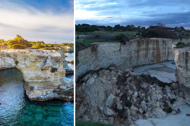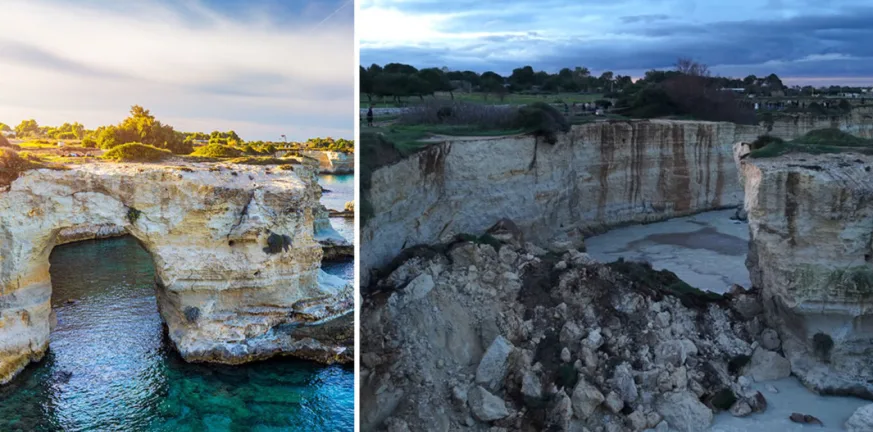Οι τοπικές Αρχές αναφέρουν ότι η κατάρρευση της αψίδας, το Σάββατο, οφείλεται σε μια σειρά από φυσικές καταστροφές, όπως η έντονη θαλασσοταραχή και οι ισχυροί άνεμοι, οι οποίοι αποδυνάμωσαν σταδιακά τη βραχώδη δομή. Σύμφωνα με τους ειδικούς, η ζημιά αυτή καταγράφεται ως η μεγαλύτερη που έχει προκαλέσει μέχρι σήμερα η παράκτια διάβρωση στην περιοχή του Σαλέντο, που είναι ήδη γνωστή για τη συνεχιζόμενη υποχώρηση των ακτών της.