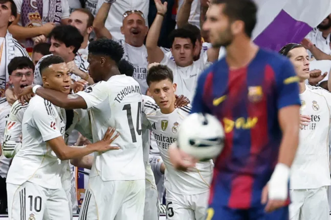Η Ρεάλ Μαδρίτης πήρε τη νίκη στο «Clasico» επικρατώντας, μετά από δυνατό ματς με πολλές φάσεις και συγκινήσεις της Μπαρτσελόνα, που δεν είχε τον τιμωρημένο Χάνσι Φλικ στον πάγκο της, με 2-1 στο κατάμεστο από 90 χιλιάδες θεατές «Μπερναμπέου», στο πλαίσιο της 10ης αγωνιστικής της LaLiga, και αύξησε στους πέντε βαθμούς της διαφοράς από τους «μπλαουγκράνα» στην κορυφή της βαθμολογίας.