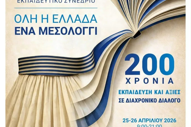 Η επέτειος των 200 χρόνων από την Έξοδο των Ελευθέρων Πολιορκημένων γίνεται αφορμή για μια μεγάλη εκπαιδευτική και επιστημονική διοργάνωση στο Μεσολόγγι. Στις 25 και 26 Απριλίου, το Τρικούπειο Πολιτιστικό Κέντρο θα φιλοξενήσει ένα συνέδριο πανελλήνιας εμβέλειας, με στόχο να συνδέσει την ιστορική μνήμη με τις προκλήσεις του σήμερα και του αύριο.