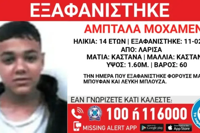 Νέα εξαφάνιση 14χρονου και συναγερμός στη Λάρισα