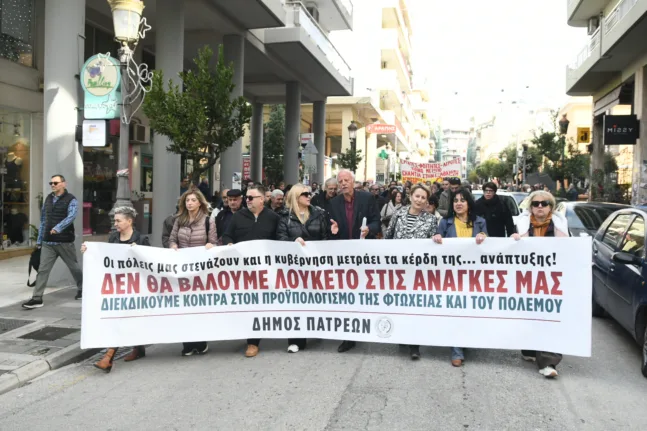 Με μεγάλη συμμετοχή εκπροσώπων εργατικών συνδικάτων, φορέων, εργαζομένων στον Δήμο και πολλών δημοτών, έγινε χθες (Τρίτη 16 Δεκέμβρη) το πρωί, η συγκέντρωση έξω από το Δημαρχείο και η πορεία στο κέντρο της πόλης. Οι Δήμοι χθες παρέμειναν κλειστοί διαμαρτυρόμενοι για την ψήφιση του κρατικού προϋπολογισμού 2026, που περικόπτει κι άλλο τις τακτικές επιχορηγήσεις προς τους ΟΤΑ, δίνοντάς τους, τελικά, «ψίχουλα»!