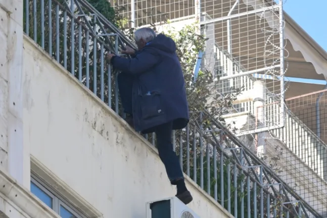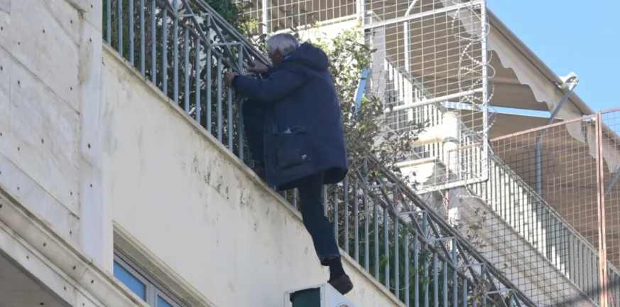 Ο άνδρας κρεμόταν από τα κάγκελα, σε ύψος που εκτιμάται ότι αντιστοιχεί σε πέμπτο όροφο.