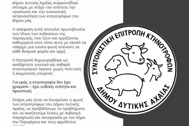 Οργανωμένη φωνή για τους Κτηνοτρόφους της Δυτικής Αχαΐας
