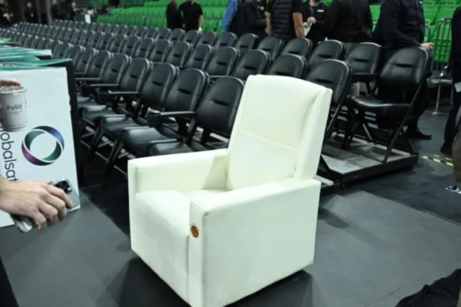 Συγκεκριμένα τρεις ώρες πριν από το τζάμπολ του αγώνα Παναθηναϊκός – Ολυμπιακός τοποθετήθηκε στο παρκέ η πολυθρόνα στην οποία κάθεται συνήθως ο ιδιοκτήτης της «πράσινης» ΚΑΕ.